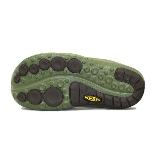 KEEN 独自の特殊技術により、アウトソールとトゥ・プロテクションを一体成型することで、シューズ全体の耐久性を高めました。トゥ・プロテクションは、つま先を衝撃から守ると共に靴をキズや汚れから守ります。