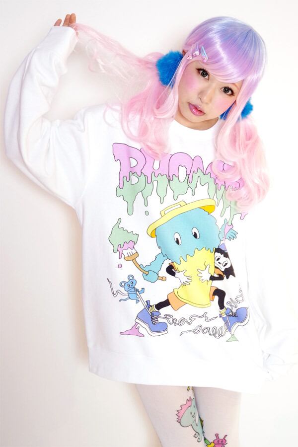 galaxxxyグラフィッカー文字8フレッシュ!入魂のNEWグラフィック!! ミントグリーン、ピンク・・・パステルの絵の具でタッチしまくるバケツ隊長!! XLサイズで大きめのルーズなトレーナーはマストハブITEM!!! スウェットの内側は、ほっこりふかふかなマシュマロタッチ起毛仕立て☆